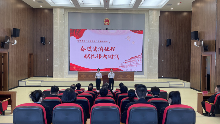 在中华人民共和国成立76周年即将到来之际,牡丹江铁路运输法院深入贯彻落实省法院新时代龙法“文化铸品”十项建设任务目标要求,精心举办“奋进法治征程 献礼伟大时代”—“以文庆生”专题演讲会。