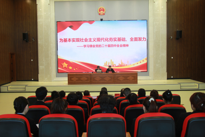 李颖教授以《为基本实现社会主义现代化夯实基础、全面发力——深入学习贯彻党的二十届四中全会精神》为题,从“十四五”时期我国经济社会发展取得的重大成就切入,详细解读了“十五五”时期经济社会发展的指导思想、重大原则、主要目标以及战略任务。同时,此次授课紧密结合法院工作实际,聚焦法治中国建设的内涵意义、使命任务和原则立场,深入剖析党的二十届四中全会对司法领域作出的新部署、新要求,实现宏观政策解读与司法实践指引的精准衔接,整场辅导内容丰富、逻辑严密,为全体干警准确把握全会精神实质提供了有力支撑。